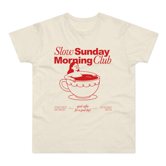 Kaffee T-Shirt • Slow Morning Club Shirt • Cozy Sunday Tshirt mit Retro Design • Geschenk für Kaffeeliebhaber & Morgenmuffel • Espresso Tee