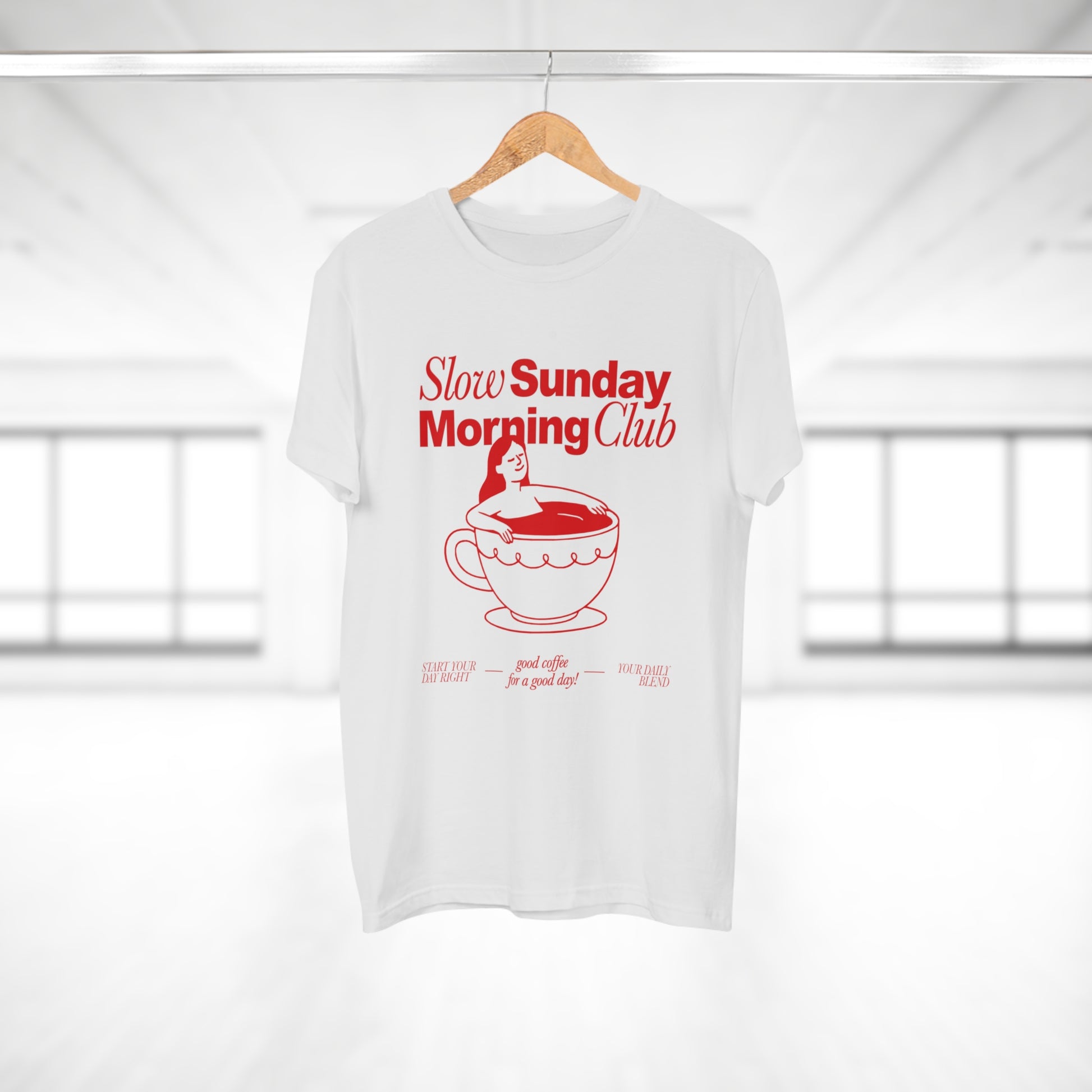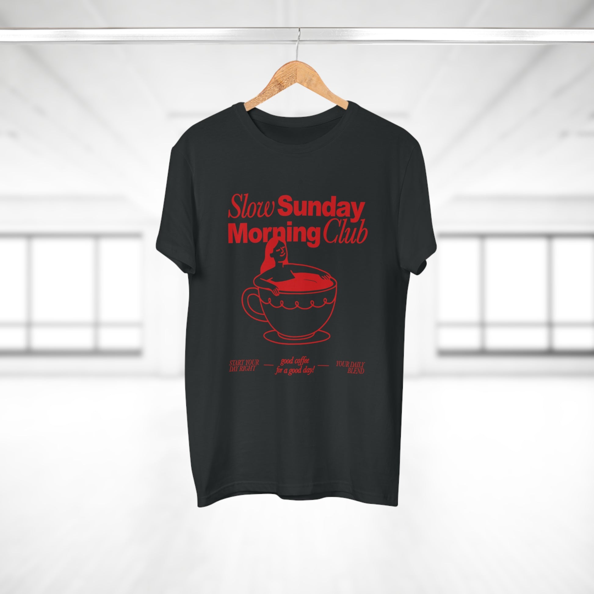 Kaffee T-Shirt • Slow Morning Club Shirt • Cozy Sunday Tshirt mit Retro Design • Geschenk für Kaffeeliebhaber & Morgenmuffel • Espresso Tee